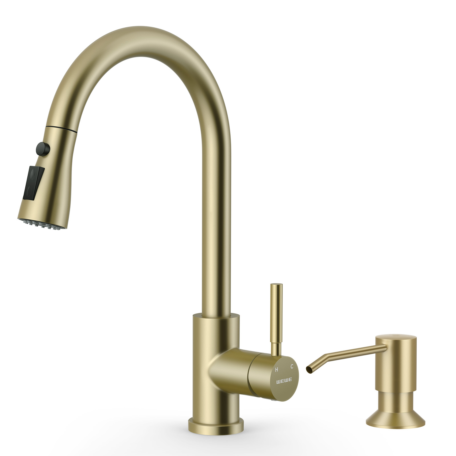 WEWE Kitchen Faucet with Pull Down Sprayer and Soap Dispenser, Stainless Steel Kitchen Sink Faucets, 3-Mode High Arc Single Handle Faucet for RV Farmhouse, Gold