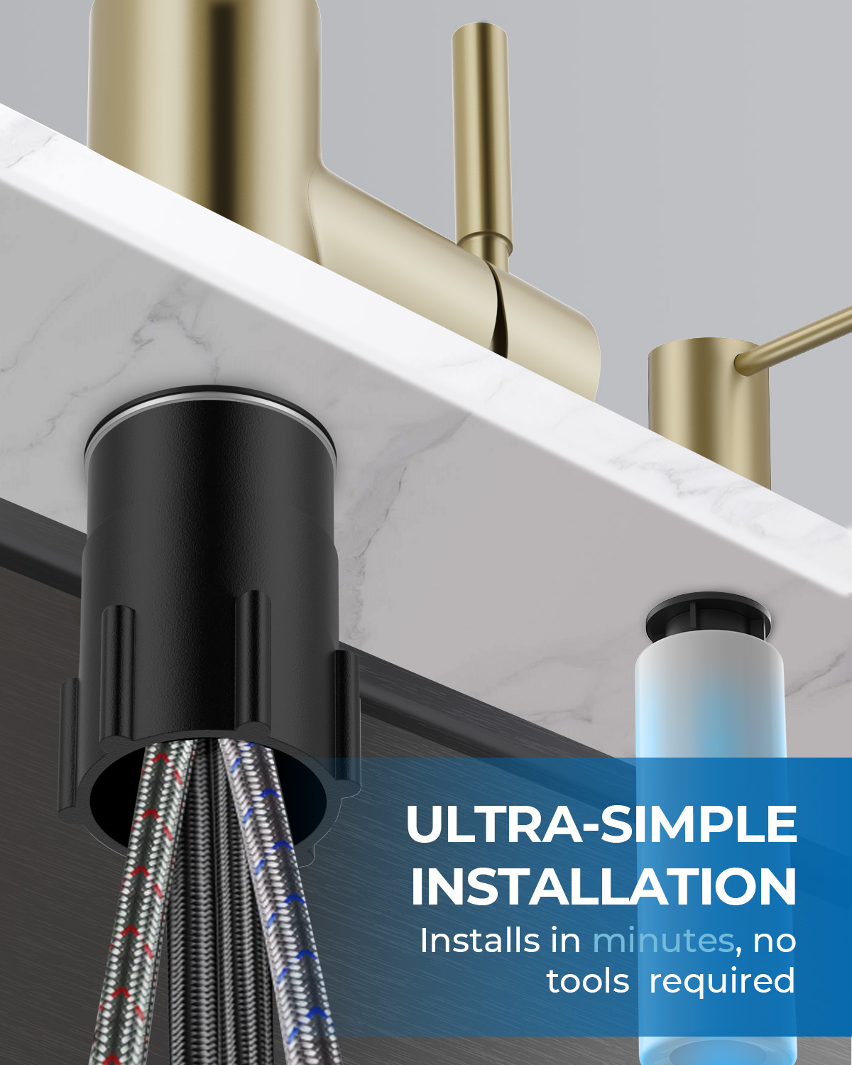 - 【Faster DIY with Extra-Long Hoses】 No plumber and no extensions needed. We provide longer supply lines to reach your shutoff valves easily: Cold 31.5″ (6.9″ longer than standard) and Hot 29.5″ (4.7″ longer than standard). Combined with pre-installed hoses and a TWIST-LOCK tool-free nut, you can secure a wobble-free mount in about 15 minutes.