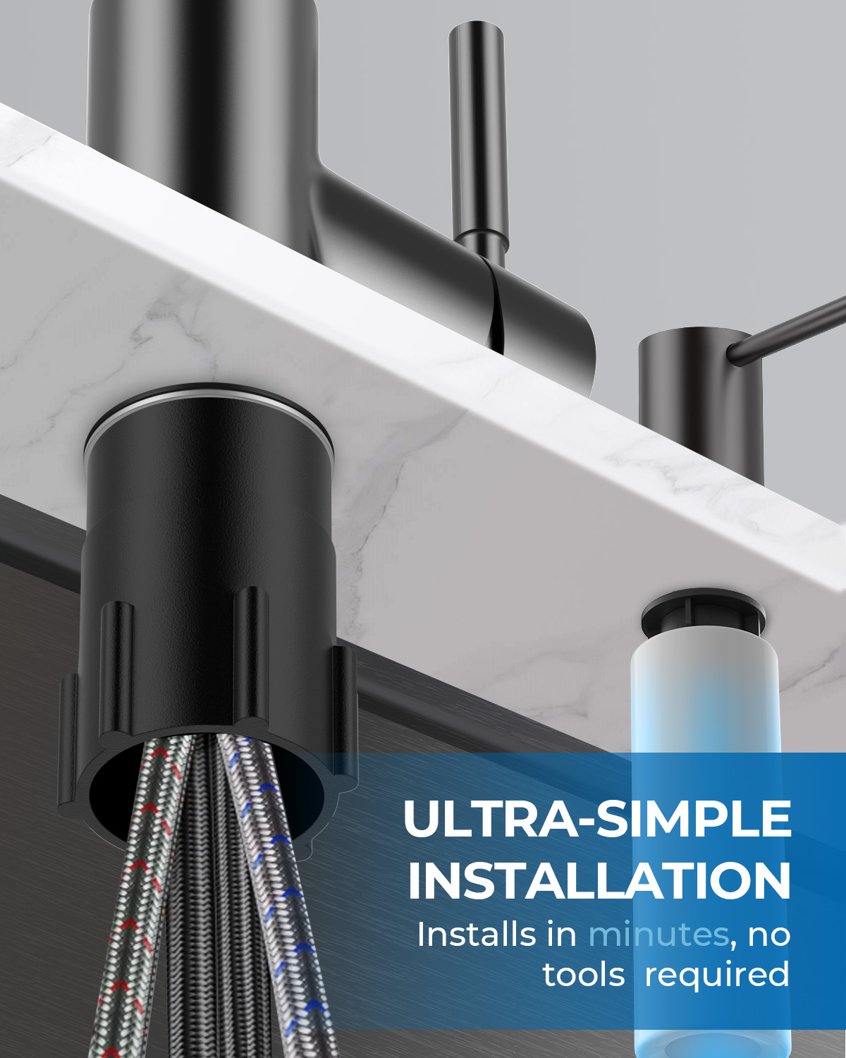 Included Components Kitchen faucet, Mounting accessory, Instruction manual, Warranty card, Soap Dispenser
