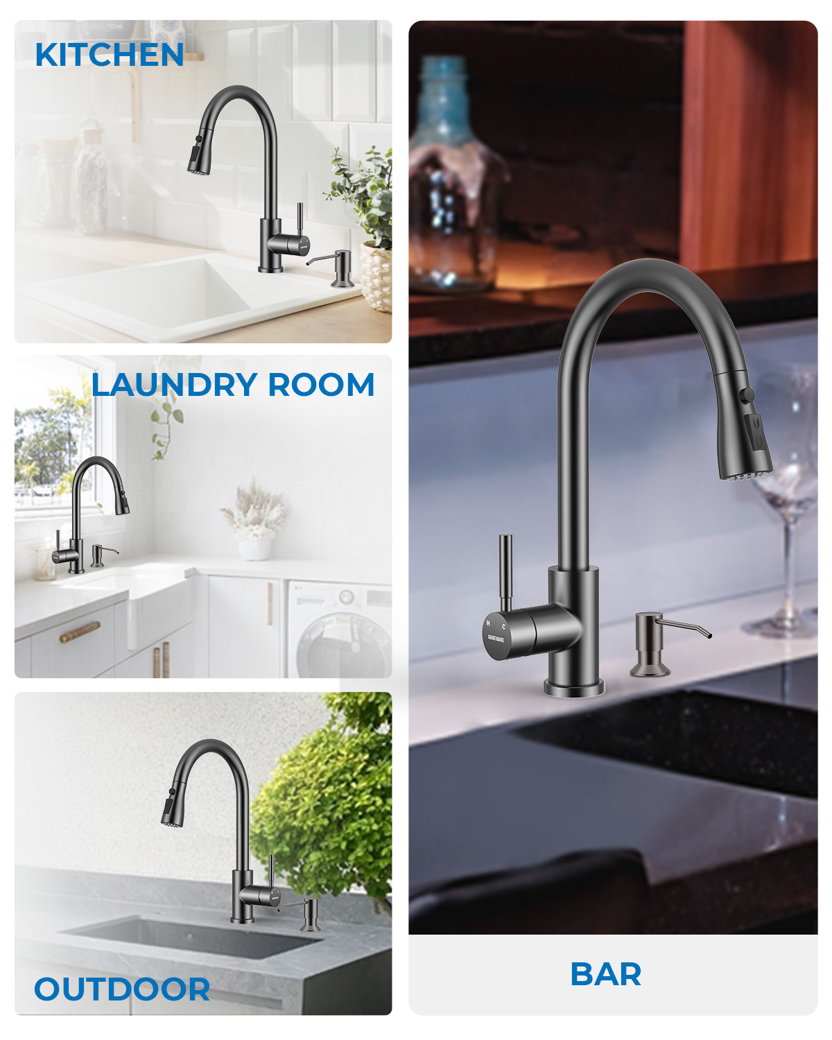 Special Feature 360 Swivel, Easy to Install, Lead Free, Pull Down Sprayer, Soap Dispenser