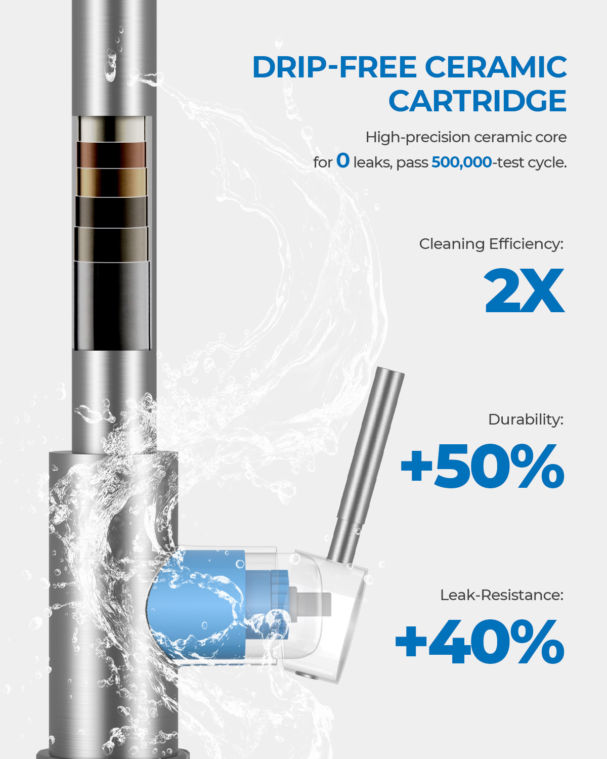 - [Industrial-Grade Durability] Feel the quality in the weight. Constructed from heavy-duty stainless steel kitchen faucets materials, the robust body is engineered to defy rust and corrosion in humid kitchen environments. The core features a precision ceramic valve, ensuring a watertight seal and smooth control that outlasts standard fixtures.