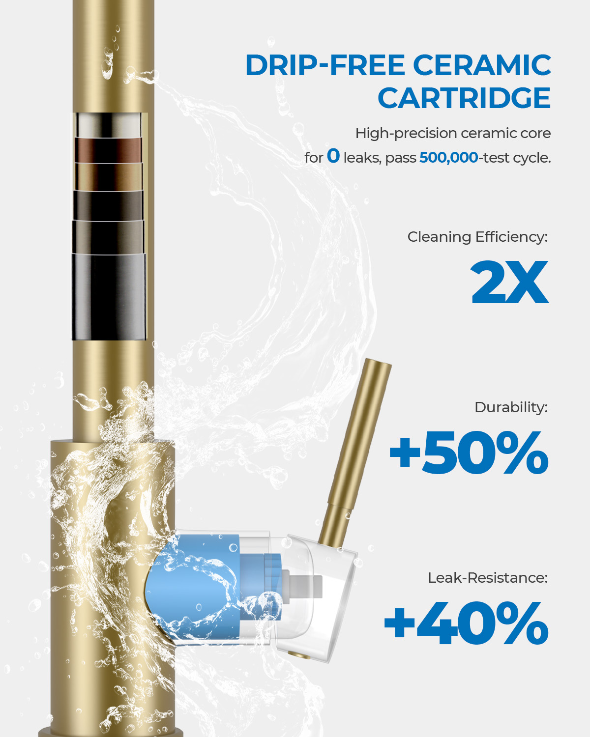 - [Industrial-Grade Durability] Feel the quality in the weight. Constructed from heavy-duty stainless steel kitchen faucets materials, the robust body is engineered to defy rust and corrosion in humid kitchen environments. The core features a precision ceramic valve, ensuring a watertight seal and smooth control that outlasts standard fixtures.