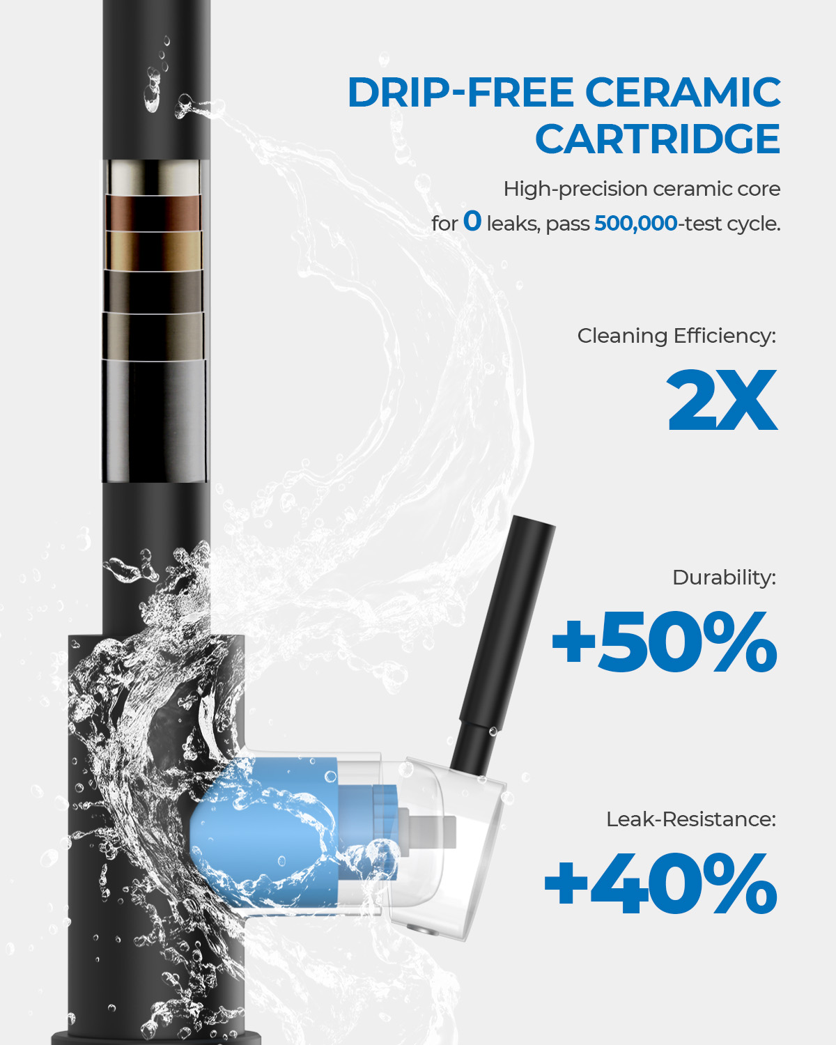- [Industrial-Grade Durability] Feel the quality in the weight. Constructed from heavy-duty stainless steel kitchen faucets materials, the robust body is engineered to defy rust and corrosion in humid kitchen environments. The core features a precision ceramic valve, ensuring a watertight seal and smooth control that outlasts standard fixtures.