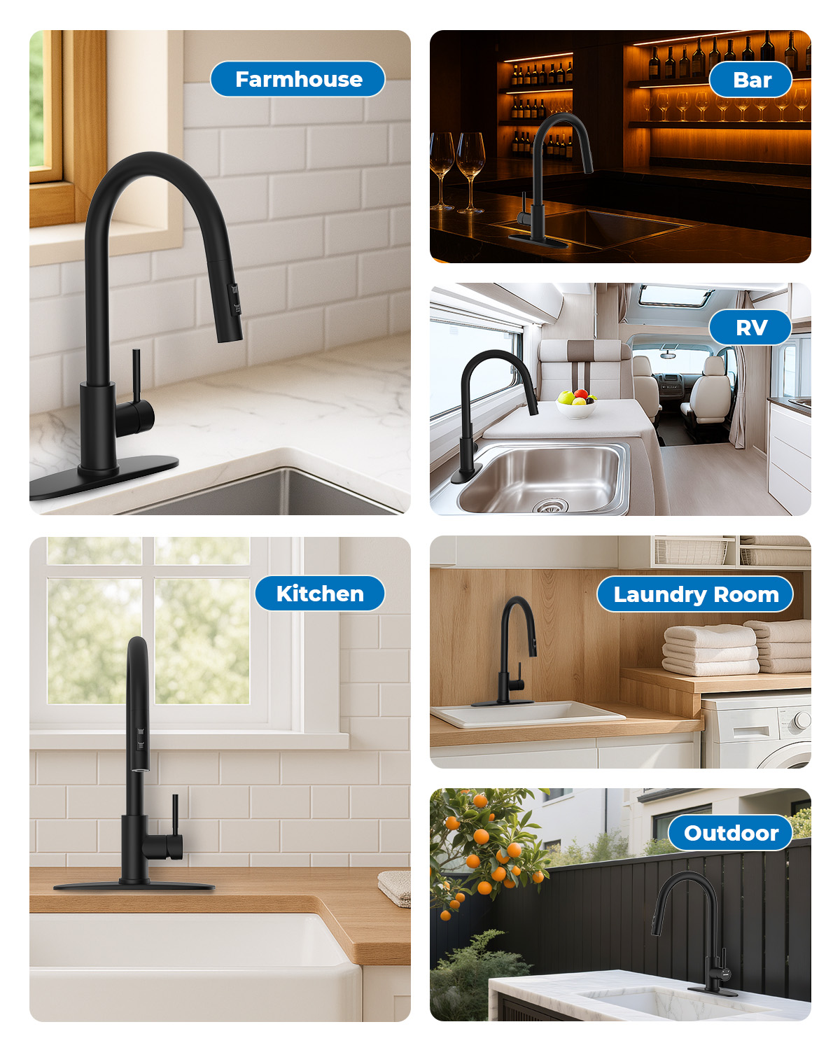 - [Lead-Free Healthy Water] Drink with confidence. We prioritize safety by using exclusively lead-free components and odorless PEX supply lines. These eco-friendly kitchen faucets prevent secondary pollution, providing your family with fresh, clean water for cooking and hydration every single day.