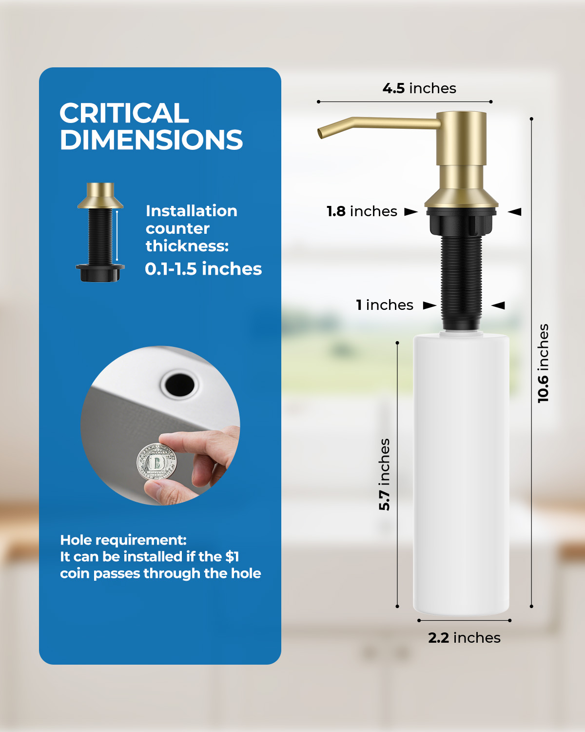 | Included Components | Kitchen faucet, Deck plate, Soap Dispenser, Mounting accessory |