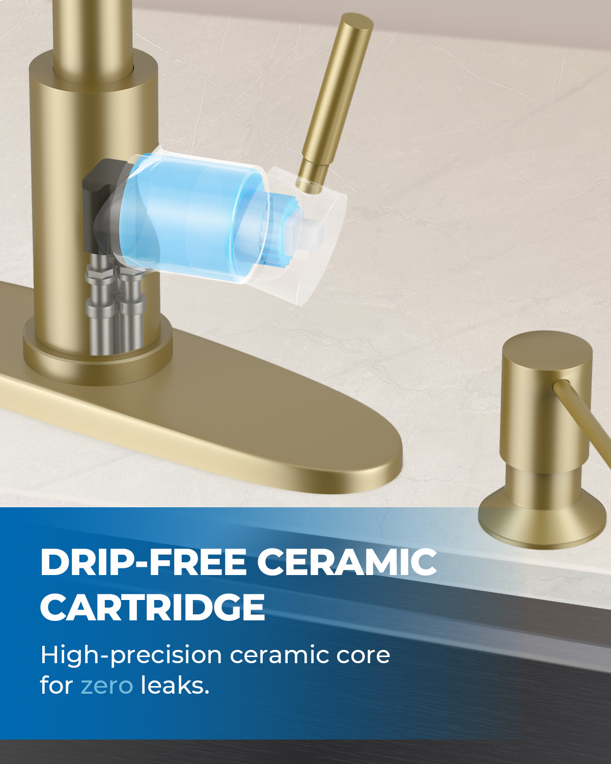 - [Lead-Free & Durable Construction] Crafted from premium SUS 304 stainless steel for lifelong durability, our faucet integrates a ceramic cartridge rigorously tested over 5 million cycles for leak-proof reliability. With a 1.8 GPM flow rate, it conserves 30% water without compromising performance.