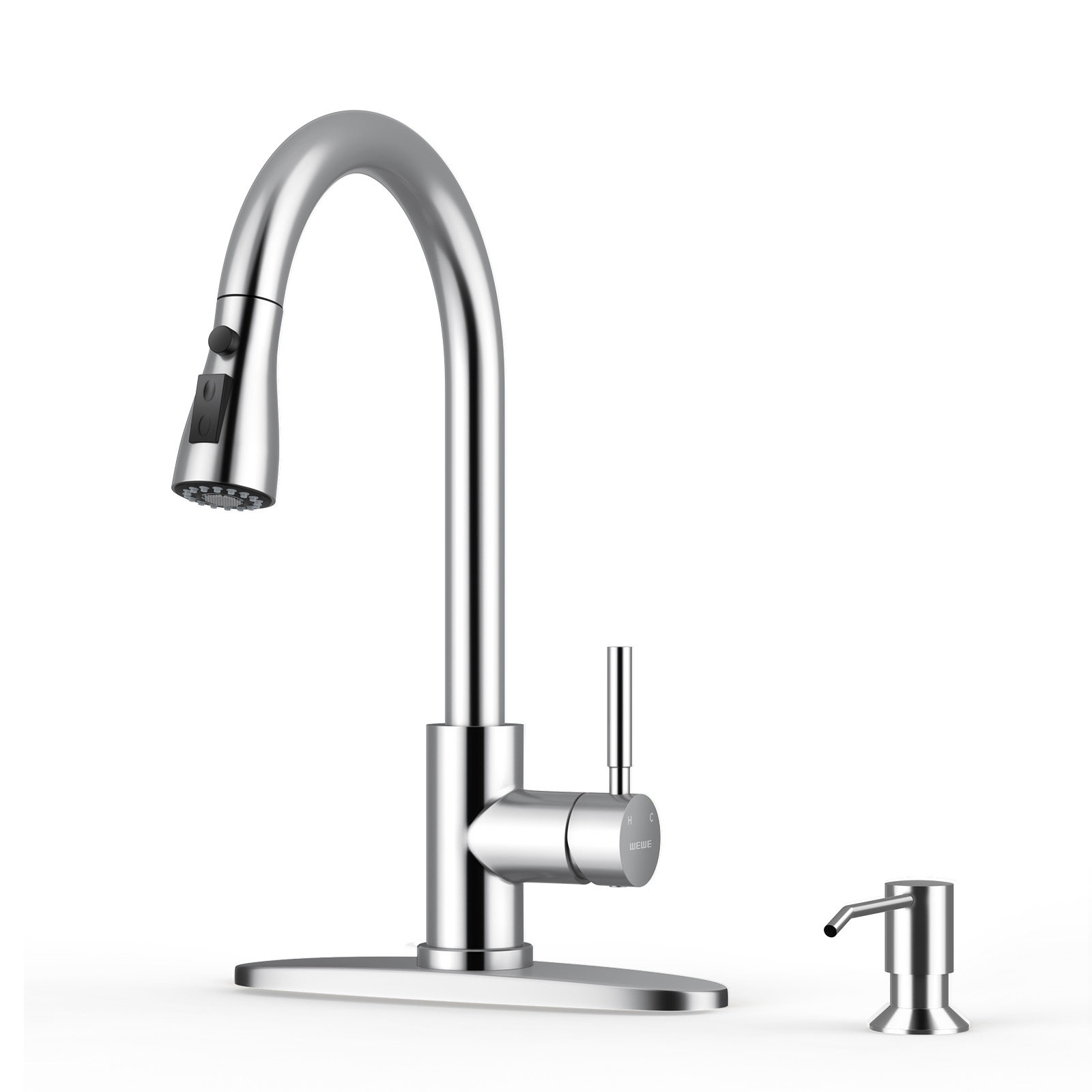 - [Premium WEWE Kitchen Faucet Set] Elevate your kitchen with our versatile faucet set, featuring a 15.7-inch faucet and a 10 oz soap dispenser—perfect for hand soap, dish soap, and beyond. Designed to seamlessly meet all your culinary needs.