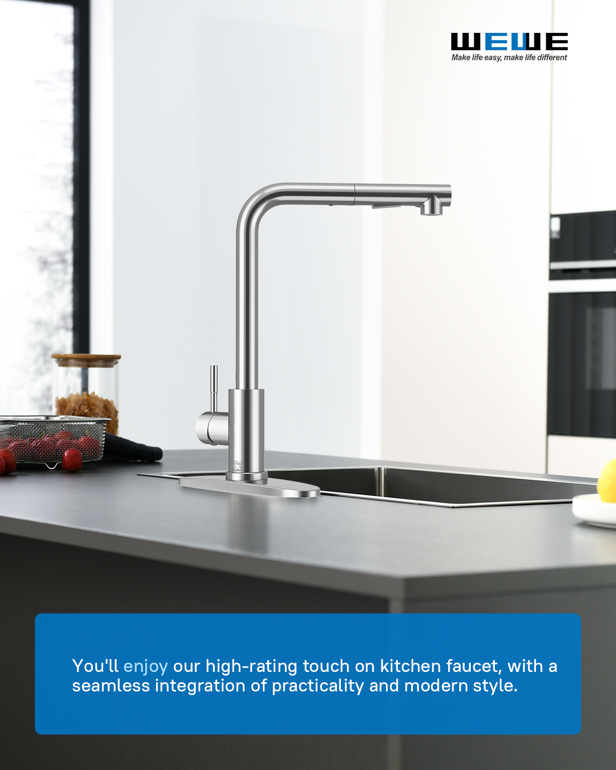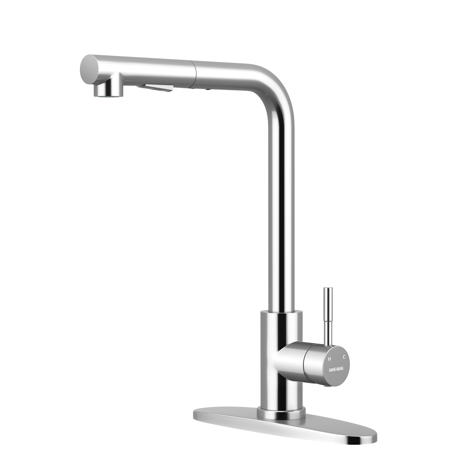 WEWE Single Handle Pull Down Kitchen Faucet, High Arc Polished Chrome Stainless Steel Sink Faucet with 360° Swivel and Easy DIY Install for 1 or 3 Hole Deck