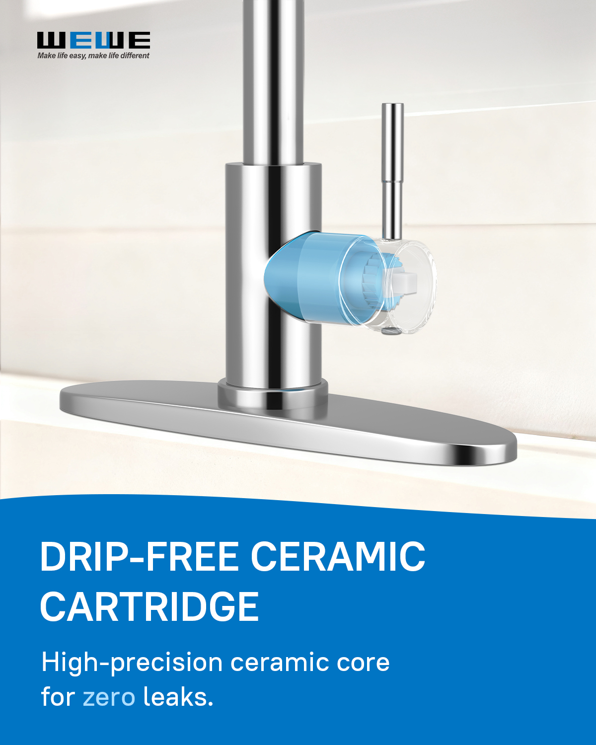 - [Leak-Proof Ceramic Valve] The kitchen faucets engineered with a durable ceramic disc valve cartridge for smooth handling and reliable leak prevention. Its quality is proven by rigorous testing for over 500,000 on/off cycles, ensuring long-term drip-free performance.