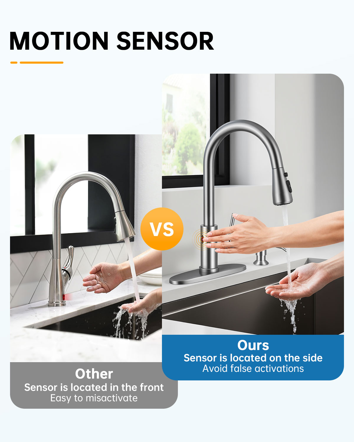WEWE Touchless Kitchen Sink Faucet with Soap Dispenser, Single Handle Kitchen Faucets with Pull Down Sprayer Smart Motion Sensor Stainless Steel, Brushed Nickel