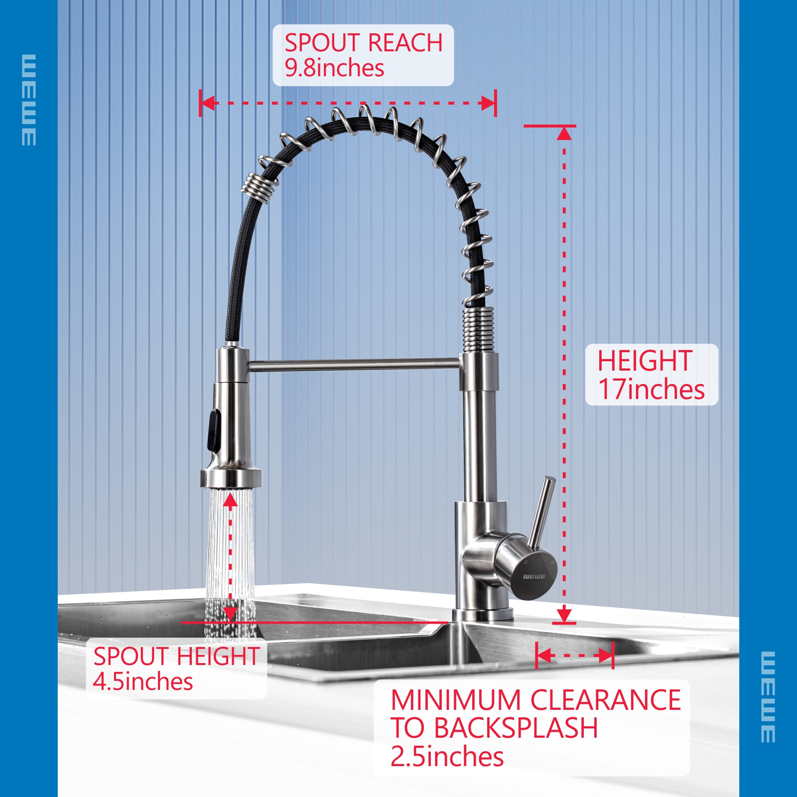 - A Perfect Fit Kitchen Sink Faucet: Your faucets for kitchen sink with commercial style spring design and the compact height 17”, can easily matches all decorating style and place, such as farmhouse kitchen faucet, rv kitchen faucet, laundry faucet, camper kitchen faucet.