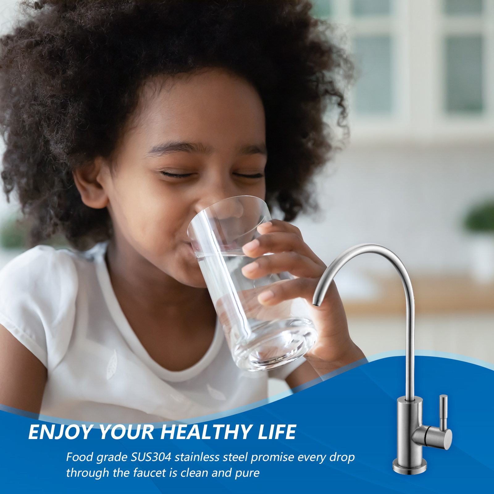 - Perfect Match: Our sink drinking water faucet has a brushed nickel finish, no matter the size or shape, this reverse osmosis faucet can be matched with the appearance of various kitchen faucets. It is also suitable for stainless steel sinks or marble countertops.