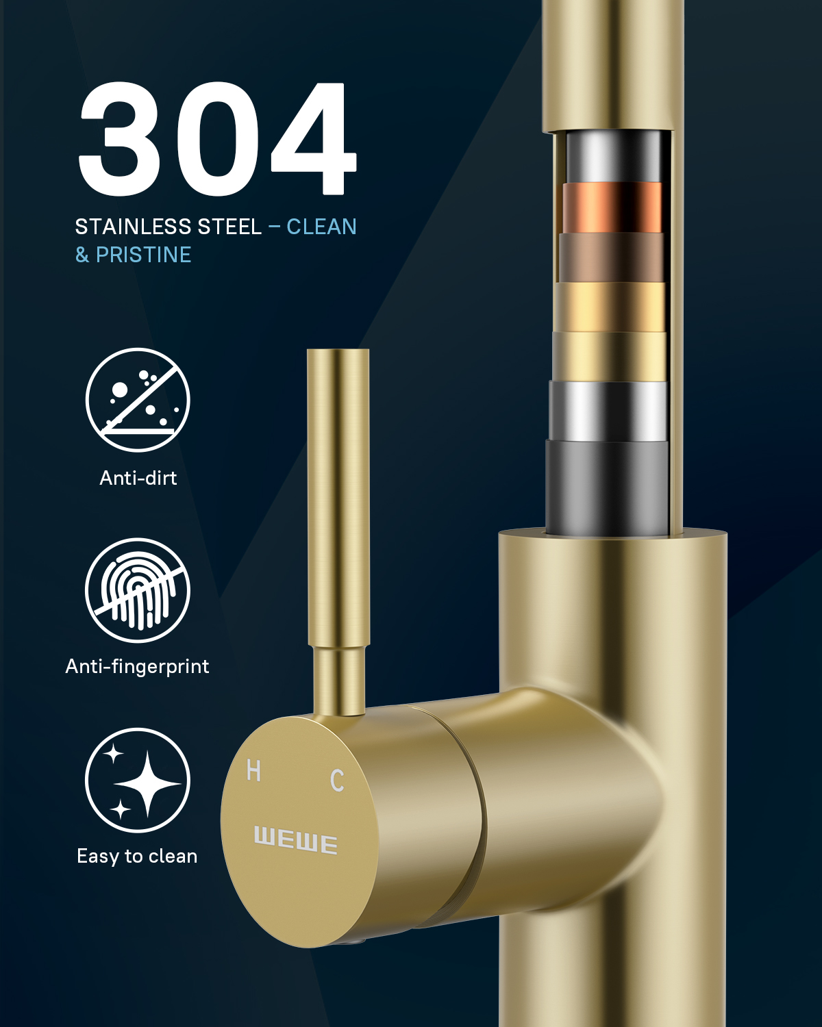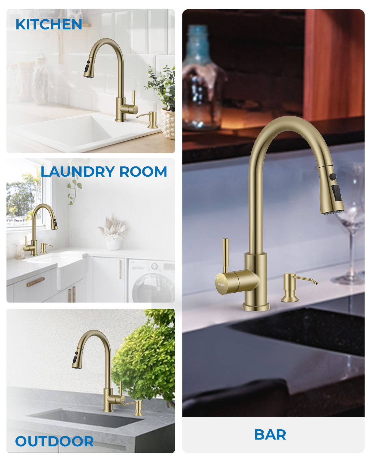 - 【Gold Color That Won’t Peel or Fade】 Built for real kitchens where rings and sponges bump the fixture. This helps the faucet say bye to fingerprints, water spots, and daily grime, keeping the gold look even and wear-free for years.