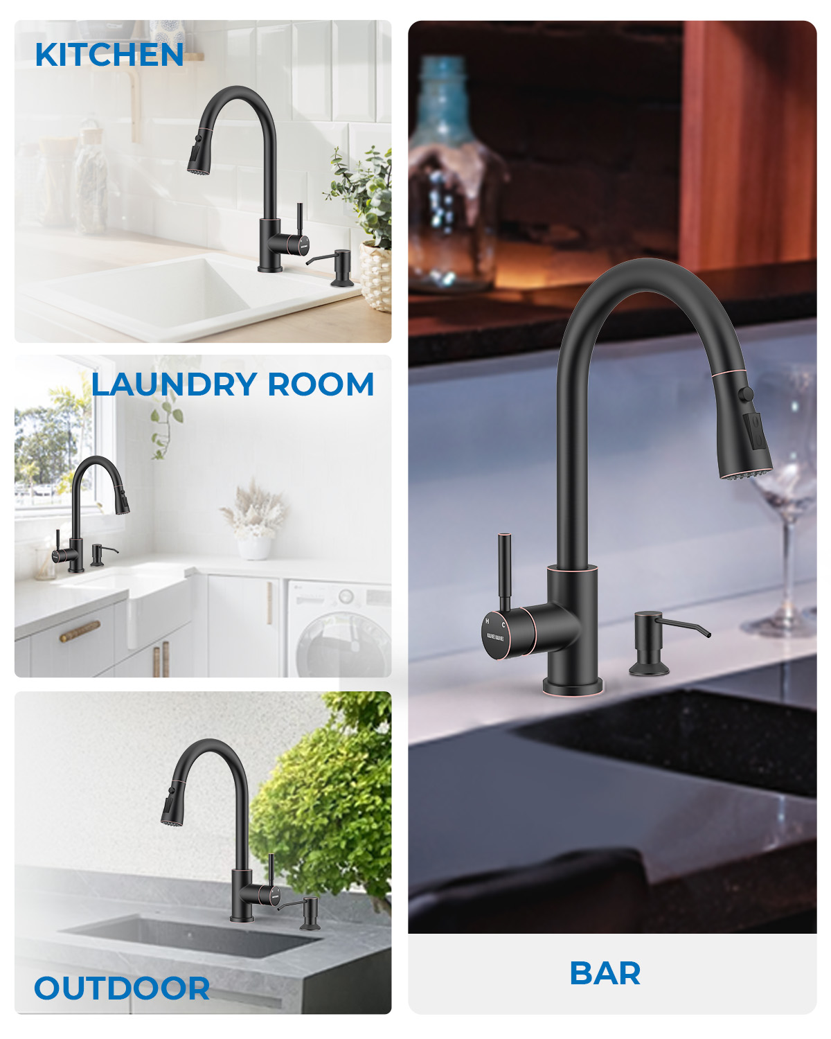 - 【Includes Matching Soap Dispenser】 Get a unified, high-end look instantly. This set comes with a matching oil rubbed bronze soap dispenser (perfect for dish soap or hand lotion). It eliminates the need for mismatched bottles on your countertop, providing a clean, organized sink area that seamlessly meets all your culinary needs.