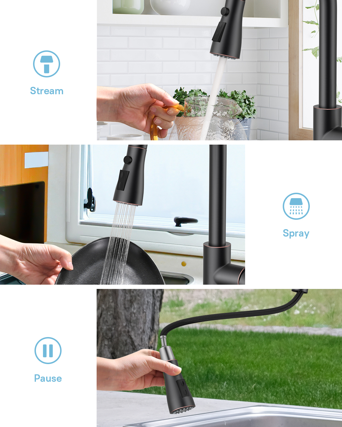- 【Oil Rubbed Bronze That Won’t Peel or Fade】 Built for real kitchens where rings and sponges bump the fixture. This helps the faucet say bye to fingerprints, water spots, and daily grime, keeping the oil rubbed bronze look even and wear-free for years.