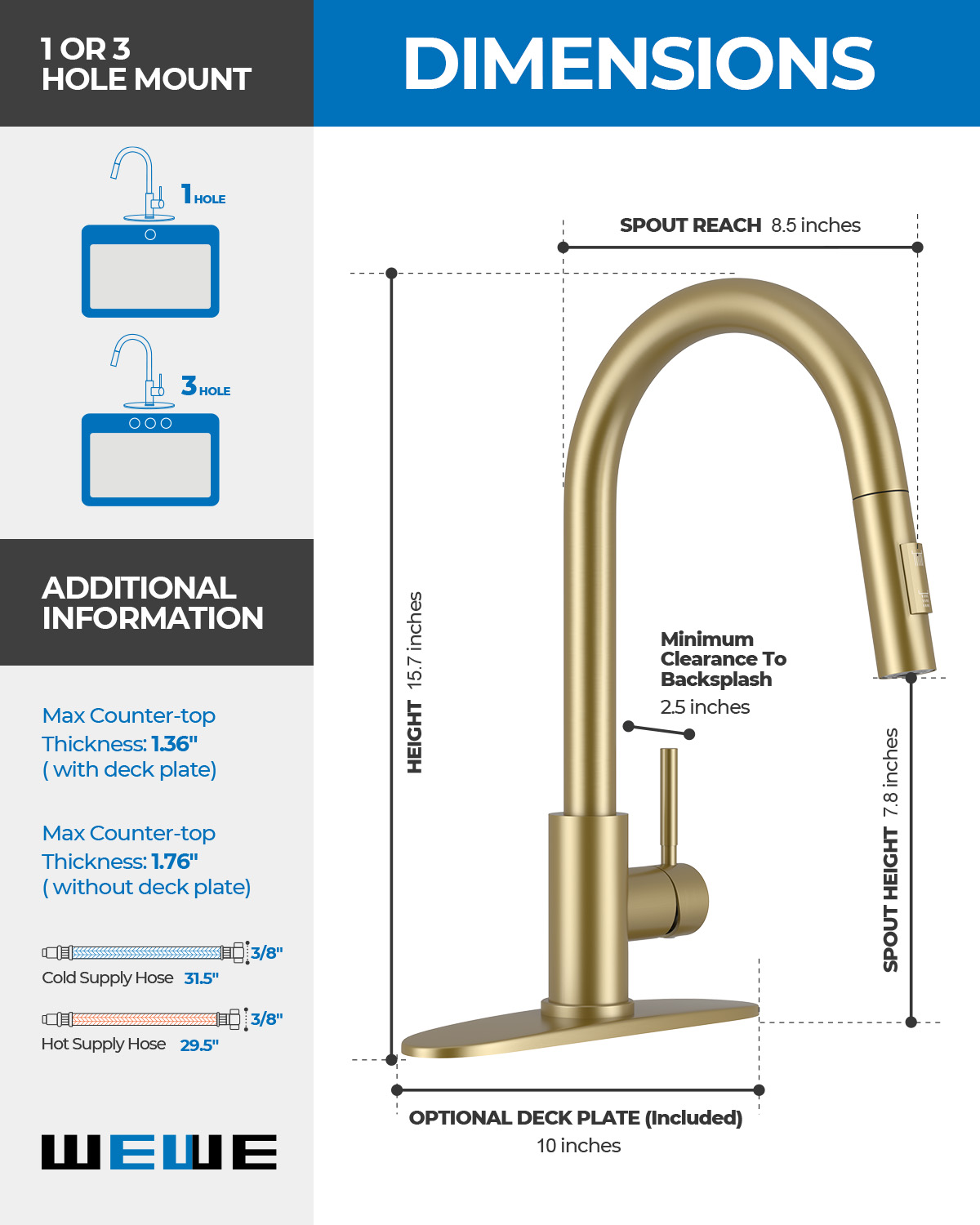 | Included Components | Deck Plate, Instruction Manual, Kitchen faucet, Mounting accessory, Warranty card |