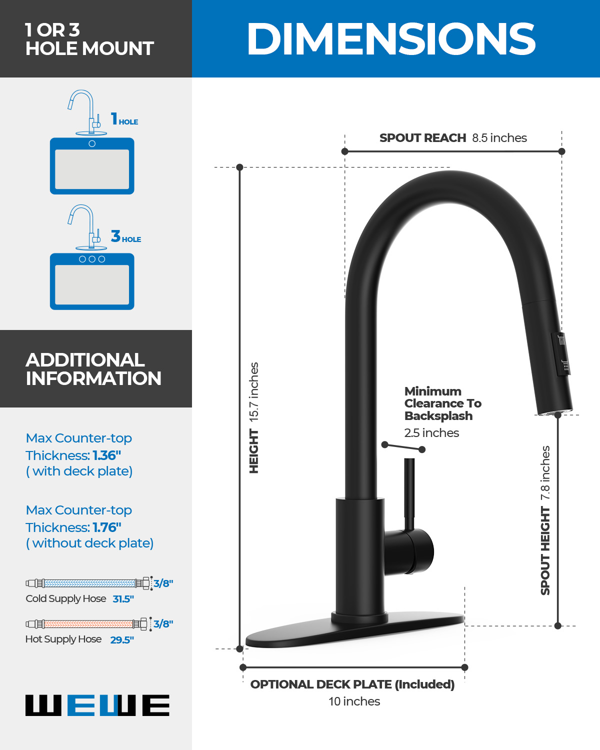 Included Components Deck Plate, Instruction Manual, Kitchen faucet, Mounting accessory, Warranty card