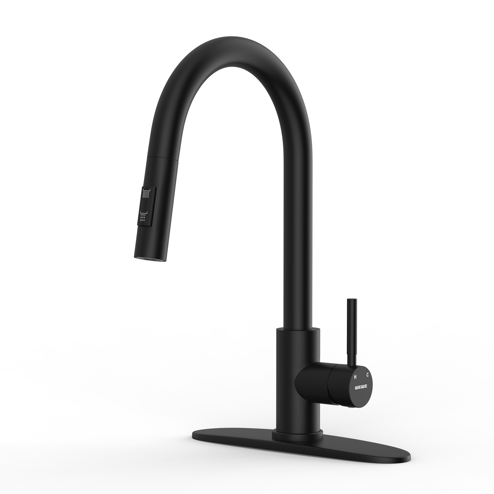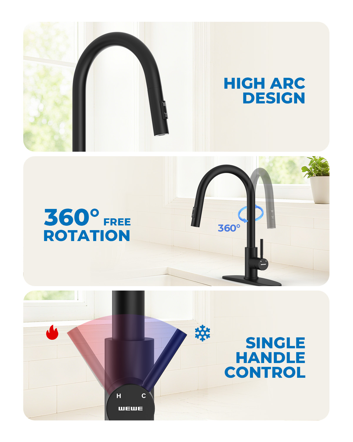 WEWE Kitchen Faucet with Pull Down Sprayer, Matte Black SUS304 Stainless Steel Kitchen Sink Faucets, High Arc Single Handle Faucet for Kitchen Sink, Commercial Modern Farmhouse RV Utility Faucet
