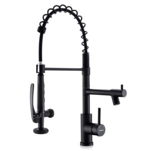 - SAFE & RELIABLE QUALITY – Matt black kitchen faucets are made up of food-grade PEX inner hoses and premium SUS304 stainless steel, providing you with fresh clean water and hygienic kitchen experience. Enjoy using this utility sink faucet.